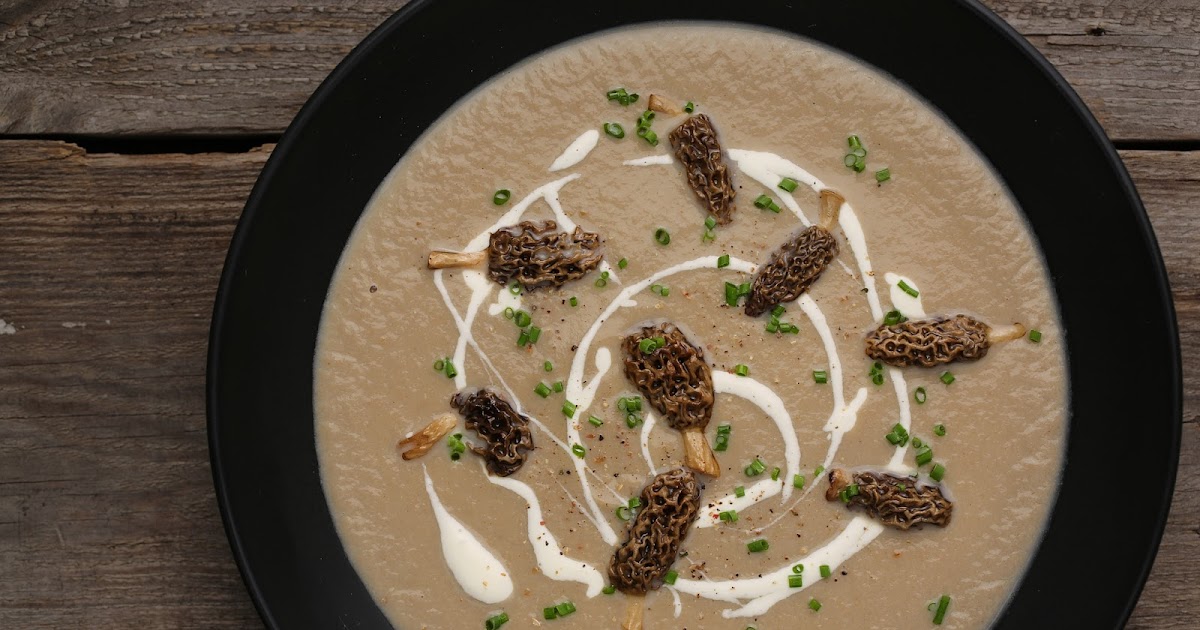 5. Puree mushroom and stock mixture until completely smooth in a blender. Return puree to pot and add more chicken stock to thin out the soup to your liking. Add heavy cream, salt and white pepper, to taste. I also added a tiny pinch of MSG for additional depth. Heat thoroughly, but do not allow soup to boil. Serve with a dollop of creme fraîche and minced chives. If you have extra morels, sautée them (always cook morels before eating) to garnish each bowl.