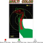 Highly visible fluorescent splash design: Instant visual feedback with dramatic splatter effects upon impact. Orange-red marks highlight vital zone hits, fluorescent green indicates body shots, and white marks show misses—enabling rapid shot assessment and pattern evaluation.