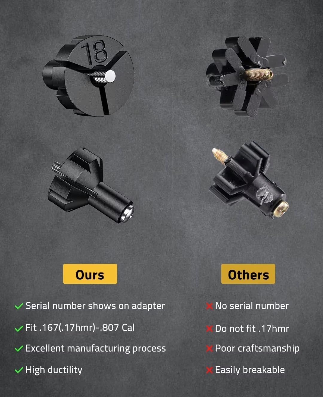 [Upgraded to 32 Numbered Adapters]: Bore sight kit comes with 32 adapters, it provides a more precise range differentiation for calibers, perfectly suitable for any caliber within the range of 0.17-12GA. Clear instruction and easily identifiable serial numbers on each adapter makes it convenient for you to select the right equipment.