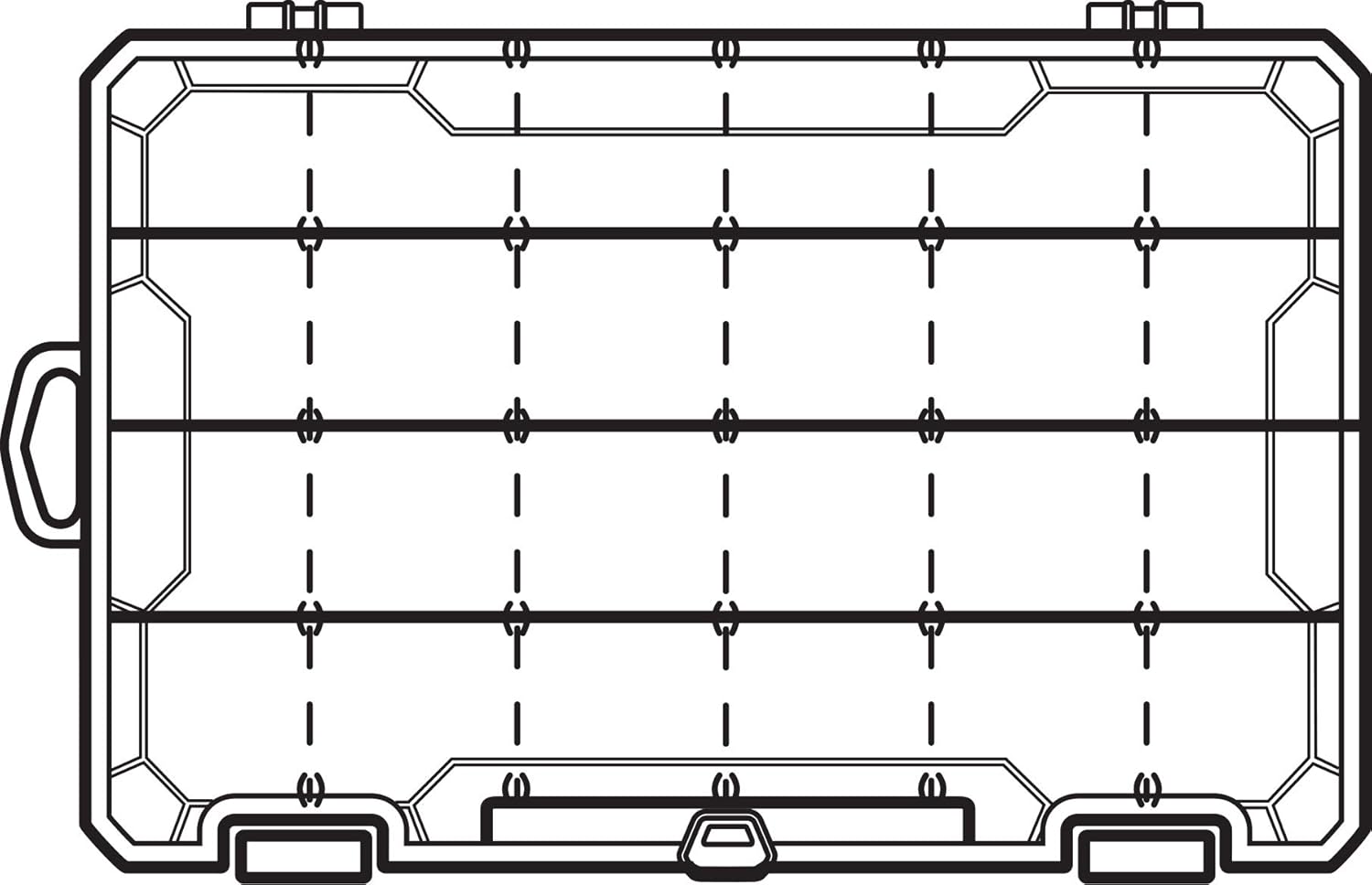 SMART DIVIDER SYSTEM: This tackle storage box offers customization options with 12 adjustable dividers that can create up to 24 different compartments. This ensures quick compartmentalization of your storage space.