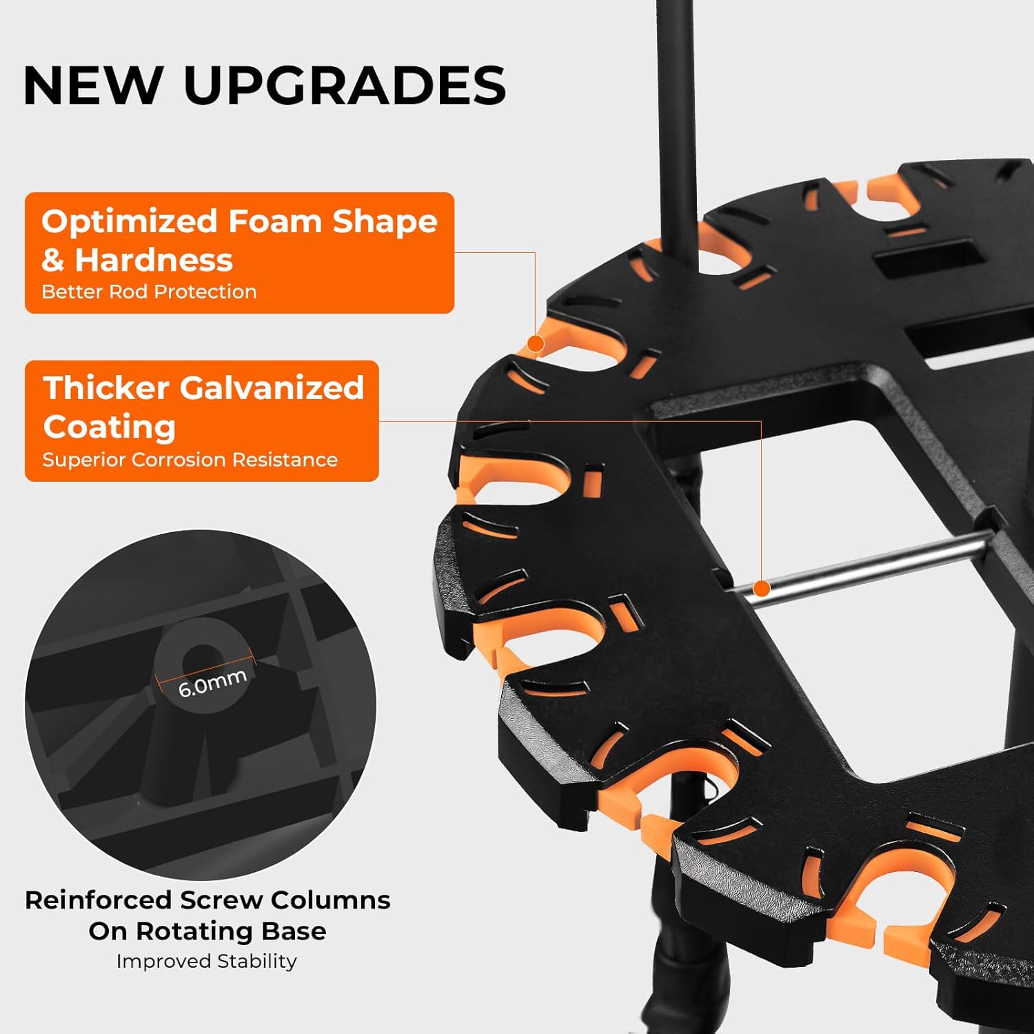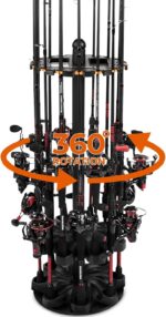 • Space-Saving Rotating Fishing Rod Holder: The V16 fishing rod holder features a 360° rotating base and stores up to 16 fishing rods or combos in less space than a single floor tile. This compact fishing rod rack is ideal for organized garage storage, letting you easily select the rod and reel combo you need for your next fishing trip.