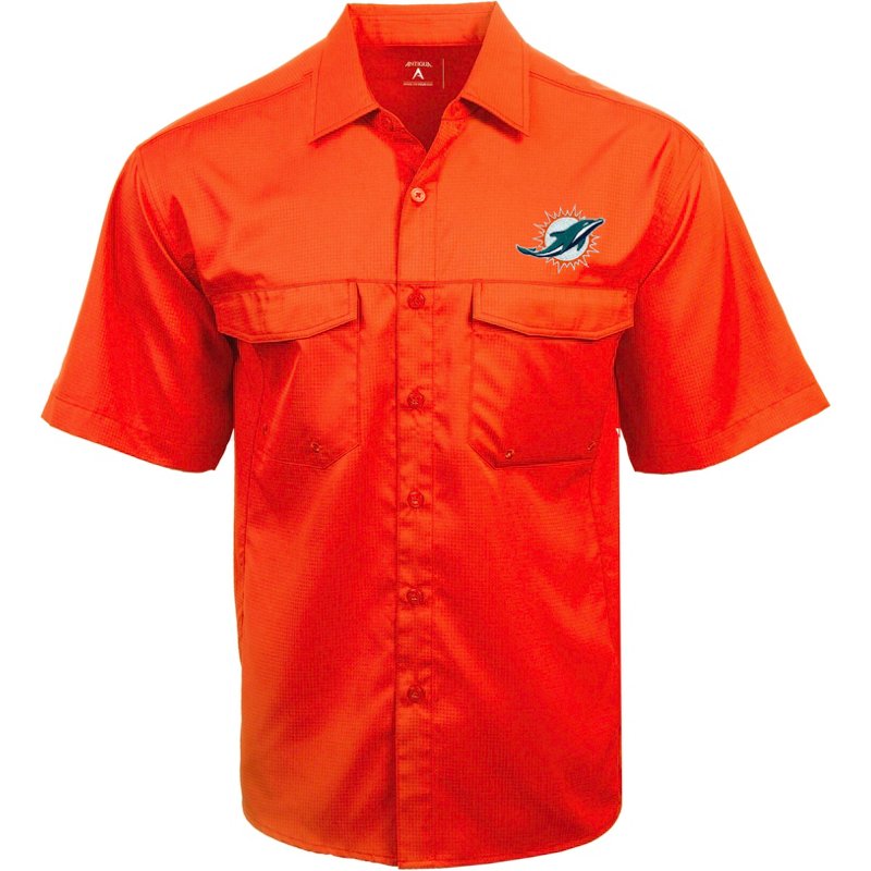 Antigua Men’s Miami Dolphins Game Day Woven Fishing Shirt