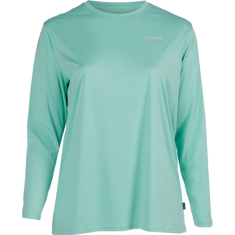 Enjoy a day out on the water in the Magellan Outdoors Women’s Caddo Lake Logo Long Sleeve Plus Size Fishing T-shirt. This long-sleeve shirt is equipped with UPF 30 sun protection, while the moisture-wicking technology keeps moisture at bay. The Magellan Outdoors™ logo printed down the left sleeve delivers a sleek look. Magellan Outdoors Women’s Caddo Lake Logo Long Sleeve Plus Size Fishing T-Shirt Beach Glass, 2X – Women’s Outdoor Long-Sleeve Tops