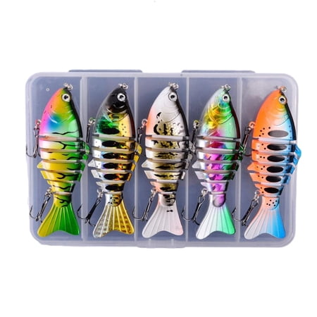 Features: Fishing Lure effortlessly attracts trout and more in both freshwater and saltwater with its swimming action and reflecting technology. The 7 segment jointed design ensures stable casting and realistic movement while plastic construction withstands harsh underwater impacts. Perfect for novice anglers and fishermen seek low effort high performances lures for family fishing trip or competitive tournaments. Targeting crappie walleye and other game fish in diverse environment including lake rivers and coastal water with the 3.94inch lure. This multi jointed lure maintains its visual appeal through repeated saltwater and freshwater use. Specifications: Component: Plastic Length: About. 10cm/3.94in Weight: 15.7g/0.54oz Pattern: 2 Pattern Optional Quantity: 5pcs Note: Please allow 1-2cm errors due to manual measurement. Due to difference between different monitors the picture may not reflect the item actual color. Package includes: 5pcs Multi Jointed Swimbaits