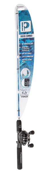 The Premium Dock combo is perfect combo for fishing around docks! The 34″ fiberglass rod makes it to easy to manage in tight spaces! The EVA handle and foregrip make this combo really comfortable to fish with. The micro spincast reel features a 4.1:1 gear ratio, an aluminum handle with EVA knobs, and comes pre-spooled with 6lb line. The Premium Dock Combo includes a mini spinnerbait, practice casting plug, and comes in your favorite camo pattern.
