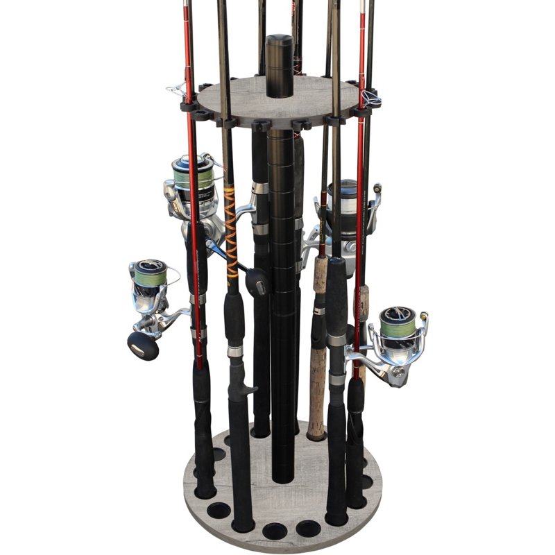 Keep your freshwater rod and reel combos neat and organized with the Rush Creek Barn Wood 16-Rod Floor Storage Rack. The durable rack features 16 flexible, soft rod clips that can adjust to most tapers and sturdy base plate caps to collect water. The laminate wood design adds a sleek, clean-cut appearance to the look. Rush Creek Barn Wood 16-Rod Floor Storage Rack – Rod And Reel Storage at Academy Sports