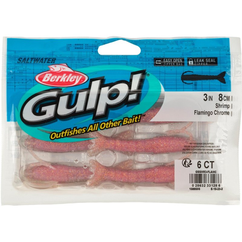 Fish how you want with the Berkley Gulp! 3 in Saltwater Shrimp Soft Baits 6-Pack. This durable soft bait withstands tough conditions for reliability and performance in tough conditions. The realistic design looks and smells like real shrimp fish love, and the scent dispersion expands the strike zone to draw fish into your line. Berkley Gulp 3 in Saltwater Shrimp Soft Baits 6-Pack Chrome – at Academy Sports