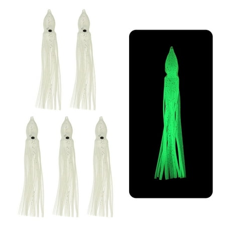 DURABLE MATERIAL Squid skirts are made of durable PVC material which is flexible elastic and resistant to wear and tear. MULTI APPLICATION Fishing squid skirts mimic the appearance and movement of squid attracting fish to bite. Great for sea trolling fishing serving as excellent bait for sea bass trout salmon and more. KEY POINTS This trolling squid skirts has a realistic appearance lifelike squid eyes and bright colors. The luminous design can glow in the dark to attract fish to take the bait. EASY-TO-USE Drop fishing squid skirts lures into water by dragging or shaking them to simulate the movement of a squid.