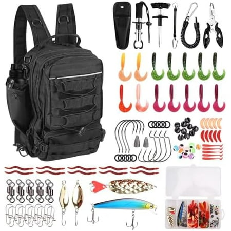 [All-in-One Kit]No more missing parts – our backpack comes fully loaded with a built-in tackle box containing 111 bait accessories (hooks sinkers lures) plus 420 stainless steel fishing pliers hook remover lip gripper and essential tools. Perfect as an ideal starter kit for teens or adult beginners-open the box and start fishing right away. [Waterproof & Durable]Say goodbye to soggy gear. Constructed with rugged 600D waterproof Oxford fabric and sealed seams this backpack withstands rain river spray and morning dew. We’ve tested it in real conditions – your tackle phone and snacks stay dry. Built to last longer than flimsy zinc-alloy competitors. [Spacious & Thoughtfully Organized]Main compartment measures 16.5″ x 11.8″ x 5.5″ – roomy enough for multiple tackle trays rods reels and personal items (wallet phone water bottle). Designed for both youth and adult users with clearly labeled pockets and a comfortable padded back panel. Finally a backpack that fits – not too small not too bulky. [Ergonomic Design]Engineered for extended wear the backpack features padded shoulder straps a breathable mesh back panel and an adjustable chest strap to evenly distribute weight. Whether hiking to a remote fishing spot or spending a full day on the bank enjoy maximum comfort without strain – built for real anglers real adventures. [Perfect Gift]Whether it’s for your grandson’s first fishing trip your husband’s weekend getaway or a camping adventure with friends this backpack delivers unmatched value and joy. Thousands of parents and grandparents call it “the perfect fishing gift” – practical fun and thoughtfully designed for real use.