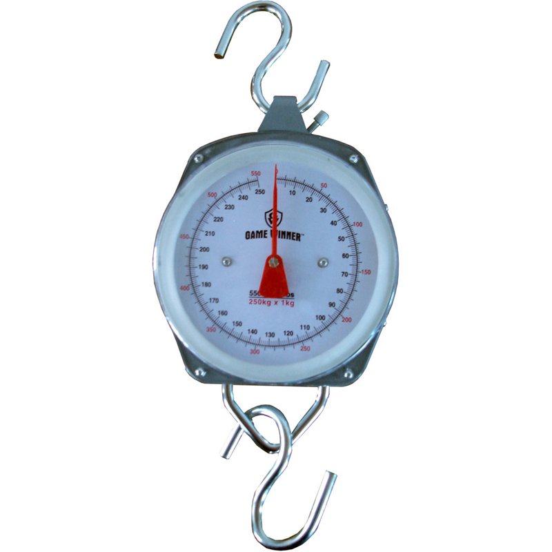 The Game Winner® Big Game Scale is designed to weigh deer and other large game accurately and features an easy-to-read dial and 2 S-hooks that allow you to attach the hoisting mechanism and gambrel system. Steel frame construction. 550 lb. weight capacity. Game Winner Big Game Scale, 350 Lbs – Hunting Accessoriesories at Academy Sports