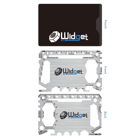 We all heard of the Swiss Army Knife. But who wants to walk around with bulky knifes hanging from their keychain or bulging from their pockets. The Widget multitool is a top rated slim waterproof “widget” that stands out from the rest & will not rust or hurt your hands. Smaller than your average credit card our stainless steel multi tool will fit in any walet purse or you can store it in your back pocket using the black pouch that it comes with. The Widget has more gadgets than you can imagine and makes a great gift for both Men & Women. Whether you are a Do-it-yourselfer into carpentry live on a boat love the outdoors work in construction an avid camper or simply need to open boxes or even to use as can openers – our slim multitools will function for a lifetime. One of the most unique products around. Designed to never bend and will not break in your hand. You will never want to leave your house without it. Perfect gifts for Groomsmen home improvement enthusiast carpenters mechanics ninjas business owner or any mens or womens occasions – there will never be a dull moment. The Widget comes in 2 colors (Black & Silver) & 2 Styles with and without a money clip. 43 Handtools: (3x) ScrewDrivers – Phillips / Flat Head Box Cutter – Blades – knives Bottles Opener (2x) Rulers ( cm / inch ) Can Opener Mount for Smart Phones Cable Bender Wire Cutter / Peeler Letter Opener Pulls Nails out (Nail Puller) Eye Glasses Screw Driver M2 Hex Wrench (4x) Open Hex Wrench (M3 M4 M5 M6) (4x) Closed Hex Wrench (7/16 3/8 11/32 5/16) M1.6 Hex Wrench Butterfly Wrench (4x) Spoke Keys (.127 .130 .136 .156) 9/16 Hex Wrench Protractor 15mm Hex Wrench M2.5 Hex Wrench (8x) Dividers (D1cm-12cm) Key Ring hole *Money clip (*Money Clip version only)