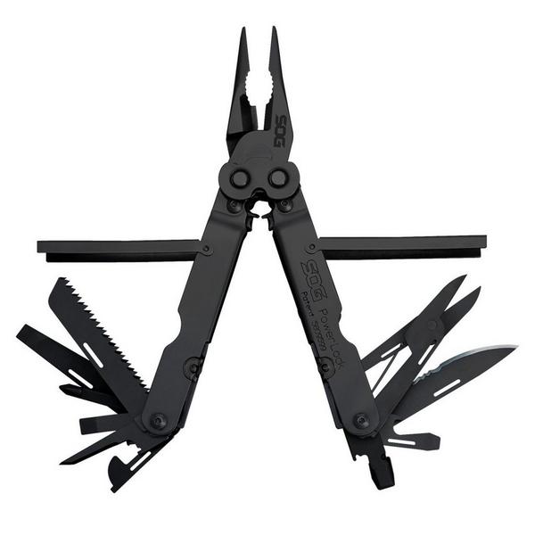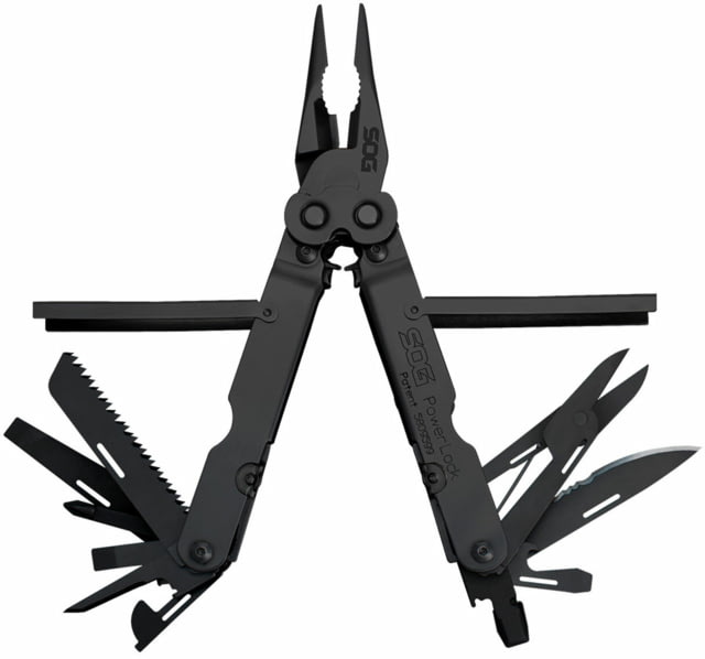 Using the proven PowerLock chassis, SOG is the only company to apply Compound Leverage technology to EOD (Explosive Ordnance Disposal). This makes it a breeze to crimp blasting caps and demolition cord with less hand pressure. Another unique SOG feature is the positioning of the crimper device within the confines of the handle…not in the plier jaw, like all other designs. This serves to minimize collateral damage to the crimper and allows the operator to have full use of the uninterrupted plier surface. Additionally, there is no weakening of the pliers that often causes breakage of the plier tips. The crimper produces non-flaring, high pull out strength crimps that meet government fuse well specifications. Also includes hard wire cutter. | SOG Powerlock Black Multi-Tool