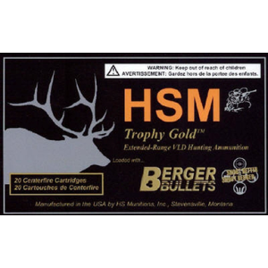 HSM Trophy Gold 30-06 Springfield 168gr VLD Rifle Ammo – 20 Rounds – A bullet that performs how you expect it to. This extended range hunting ammunition goes above and beyond your expectations. Berger VLD Bullets; 2942 FT LBS; 2808 FPS; Made In The USA;