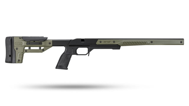Manually cocking single-shot bolt action; Rebounding firing pin automatically blocked to prevent accidental discharge; Adjustable rear peep sight, Fixed front sight; Drilled and tapped to accept Crickett scope mounts; Stainless Steel 16.125″ barrel; Single shot; Desert Tan synthetic stock; Includes swivel stud screws, eye and ear protection, scope mount, and EZ loader