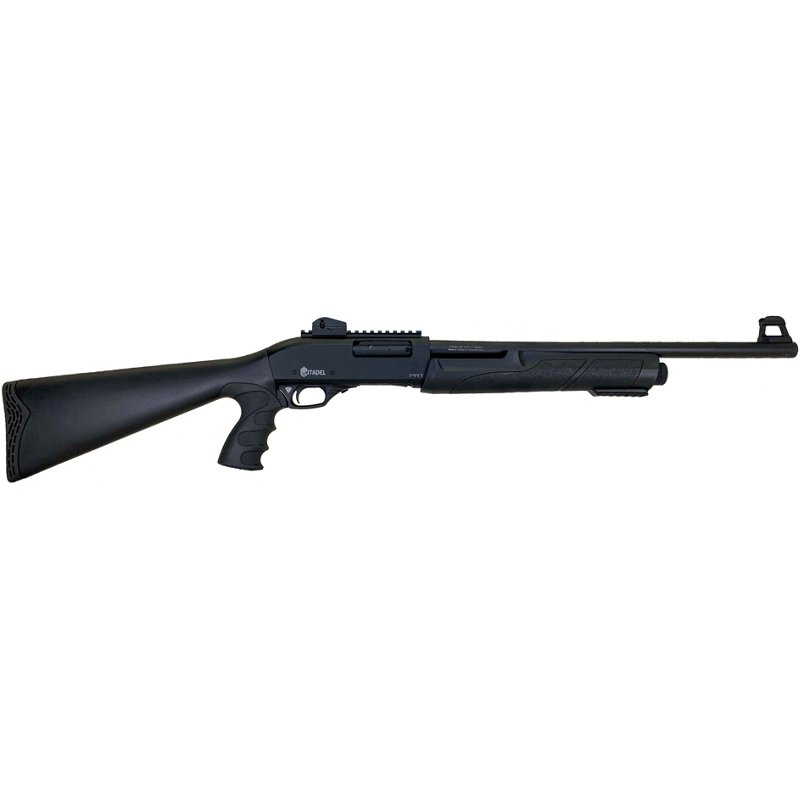 The Citadel CDA Force 12 Gauge Pump-Action Shotgun has a 20-inch barrel with a capacity of 3+1, a steel receiver and a matte finish. This firearm has a post sight in the front and an adjustable sight in the rear, a trigger lock and a manual safety. The stock is a synthetic pistol grip, and it has a Picatinny rail. Citadel CDA Force 12 Gauge Pump-Action Shotgun – Shotgun Manual at Academy Sports