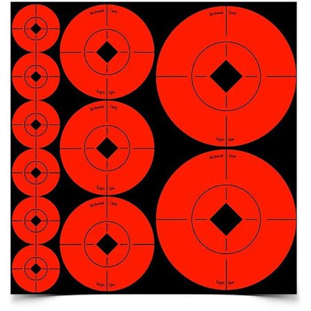 Convenient Target Spots self-adhesive orange targets create instant bullseyes for all types of target practice. The high-contrast, radiant orange color lets you see a sharper sight picture and bullet holes more clearly for better scores and smaller groups. Target Spots assorted size orange targets.Features:High-contrast, radiant orange colorNon-reactive targetsAssorted size: (60) 1 inches targets, (30) 2 inches targets and (20) 3 inches targets
