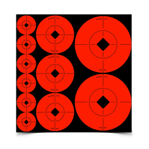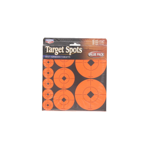 Convenient Target Spots self-adhesive orange targets create instant bullseyes for all types of target practice. The high-contrast, radiant orange color lets you see a sharper sight picture and bullet holes more clearly for better scores and smaller groups. Target Spots assorted size orange targets.Features:High-contrast, radiant orange colorNon-reactive targetsAssorted size: (60) 1 inches targets, (30) 2 inches targets and (20) 3 inches targets