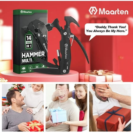 GHRTGR-12 in 1 Multitool Hammer Gifts for Dad Fathers Day Dad Gifts from Daughter Wife Son Camping Accessories Survival Gear Cool Gadgets Gifts for Men Husband Boyfriends Birthday Gifts for Him
